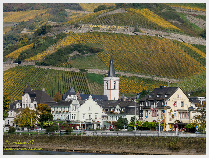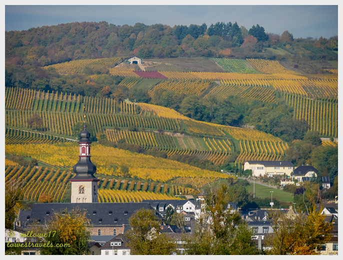 The Rhine River begins as a trickle in the Swiss Alps and flows 820 miles through several countries to the North Sea. In the heart of Germany, the Middle Rhine flows past quaint villages, steep vineyards blanketing hillsides, picturesque forest, half-timbered homes, and historic castles and palaces. This stretch of the river Upper Middle Rhine is often called the Rhine Gorge or Romantic Rhine and is also a UNESCO World Heritage Site and you will see below why.