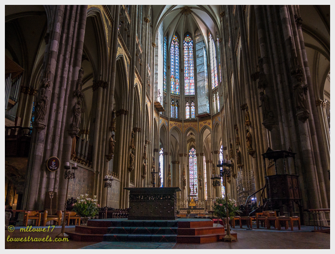 But what survived and was spared by Allied bombs is the 14th century Cologne Cathedral that towers over the Old City and a treasured heritage. Construction began in 1248 and continued in stages over six centuries, with final completion in 1880. It is the largest gothic cathedral in northern Europe, and a magnificent church with two soaring spires that are visible for many miles.