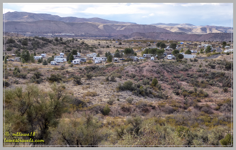 With the Sonoran Desert in our rearview mirror, we settled in for a week in the Verde Valley at Cottonwood, midway between the cold high country and the desert floor of Arizona. Several small towns (Jerome, Sedona, Clarkdale and Cottonwood, to name a few) in the valley have a quaint character and richness in history. The valley is named after the Verde River, which winds its way through those communities and provides all sorts of recreational opportunities including fishing, birding, wine tasting, history and outdoor activities. This was our second visit here, and this time we focused on three historic sites containing ancient ruins.