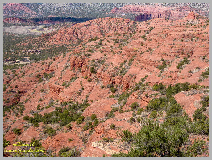 So funny to see what in the east would be known as a stream called the Verde River. Nice picture of it with the shadows on the mountains behind and the clouds. Amazing that you can visit all 3 ruins in one day. Really beautiful pictures of the ruins. Love the placement and angle at Tuzigoot. Five story buildings on top of a cliff built almost 900 years ago just boggles the mind. Love the picture of the ladders the tourists used to climb. Sure wish I’d been there then, able to walk in the same spots as the builders. Sorry to hear it was so busy early during the week and in March. Perhaps the only time that’s not true is in the heat of the summer. The story of Montezuma Well is amazing. It’s a wonder it doesn’t evaporate more water than it can replace in the hot desert sun. Really incredible pictures from the state park Mona Liza. Love Lucy’s hood and Steve overlooking such a view. You are wearing the perfect color in that fantastic picture of you in the grasses. Super finale hike and closing picture. Love those red rocks.