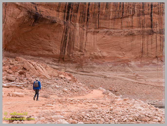 Once the boat was docked we were the first two off for the 1.5-mile walk up the canyon. The distance changes as the water level varies, and it took us about 30 minutes on this day. The natural bridge is tucked back among a rugged, isolated canyon at the base of Navajo Mountain.