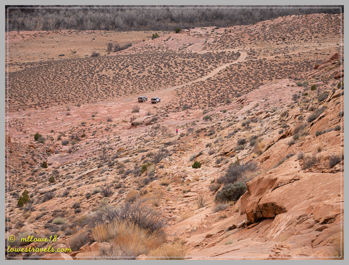 When we arrived in Bluff, our friends were waiting and ready to take us, the “jeepless travelers” for a ride along a narrow, sandy and rocky road to the San Juan Hills. They had been on this trip before, but because they are such thoughtful and nice friends they offered to share this fun trek with us – or perhaps it was another not-so-subtle hint that we simply must get ourselves a Jeep?