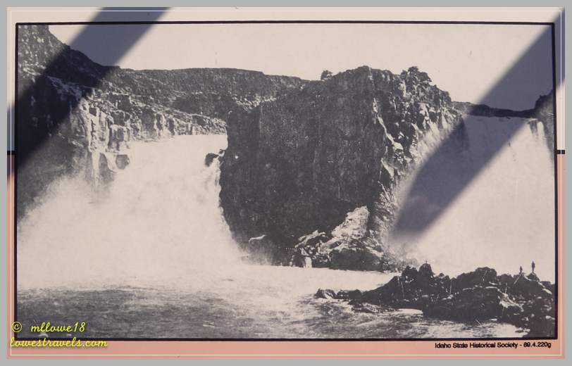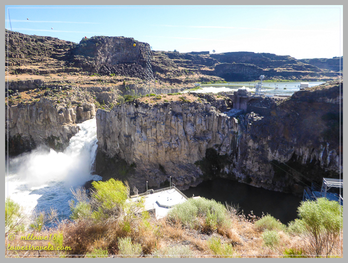 To complete our visit in Magic Valley we drove east of the Snake River to see two waterfalls that were created as a result of the Bonneville Flood.  Our first stop was to see the namesake of the city, Twin Falls, which was named when there were originally two parallel falls on the river.