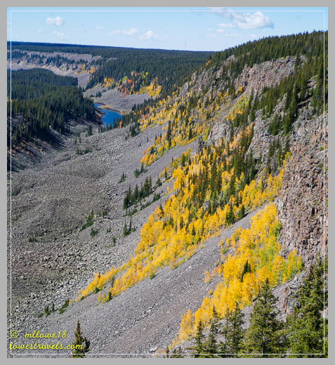 That is a huge mesa! So sorry you got shut out on the full loop trail and even sorrier it was because of the problem for the trees but what you did was quite a trek starting at over 10000 feet. That first forest opening is beautiful. You have more great phone apps than anyone I know. What fun to have the peaks identified for you. I’m amazed at the lakes and those golden views. Love your positive attitude about a wrong turn. You definitely got the fall color. It hasn’t happened here yet. Global Warming is giving us 90 degree temps in October. Previously unheard of.