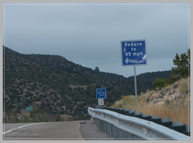 A highlight of our excursion was driving over the rumble strip on a stretch of Route 66. To get the road to play “America the Beautiful”, Dave had to drive over the strip at exactly 45mph. He patiently drove it three times (and was probably considering committing hari-kari) as we tried to capture the sound on our phones. Here’s the recording I captured, turn it up and listen carefully to hear it: