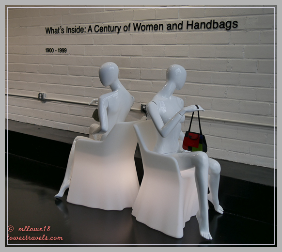 Four special purse exhibits – Skins, Shapes, Travel and Evening – were each highlighted with a unique diorama. The visit was interesting and worth my time and the $10 admission fee. I was fascinated to learn the role of purses and their contents throughout history, and I didn’t even buy a purse while I was there!