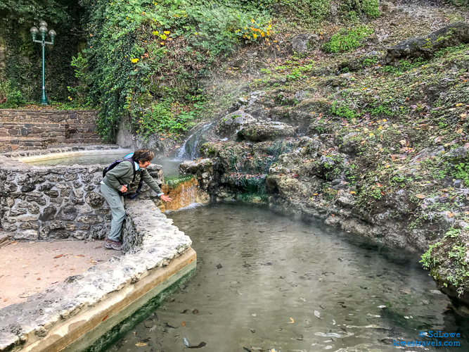 The park protects 47 hot spring as its primary resource and collects 700,000 gallons a day for use in the public drinking facilities and bathhouses. The water is drinkable and it’s provided free of charge and had we brought a container we could have taken some home.