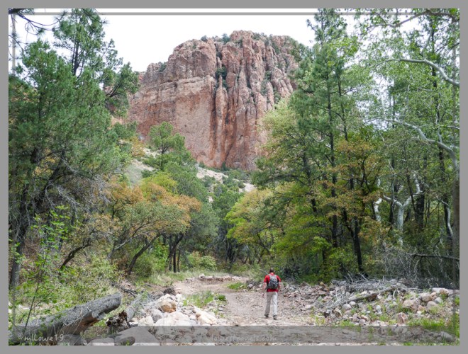 Our first hike followed Greenhouse Trail #248, which led to Winn Falls, a 365′ cascade of water falling over a V-shaped lip. It was a fairly strenuous 6.2-mile hike that began at the canyon bottom and took us through over 2,000′ of elevation gain into the Chiricahua high country.