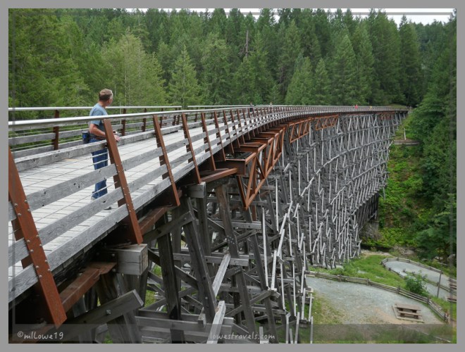 On the historical side, we walked the Kinsol Trestle Trail, with the former train trestle that’s considered noteworthy because of its unusual seven-degree curve and massive size. It was built in the 1920’s as part of a network of railways and trestles threading through the wilderness of Vancouver Island. It’s one of the tallest free-standing timber railway trestles in the world, built by local farmers and loggers.
