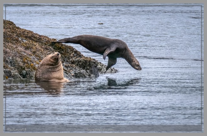 1. Always exciting to see the critters when you’re looking for them! Love the pic of the sea lion launching from it’s rock perch. Never fear, I know what the guide was saying when she was pointing to the mouth, “This is the bitey end.” 😊