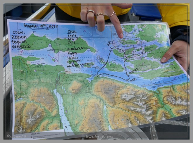 To wrap up where we were and what we had seen, Rebecca showed us on her map.  The crew did a great job, and Rebecca was informative and just as excited as we were to see all of these magnificent mammals during our tour.