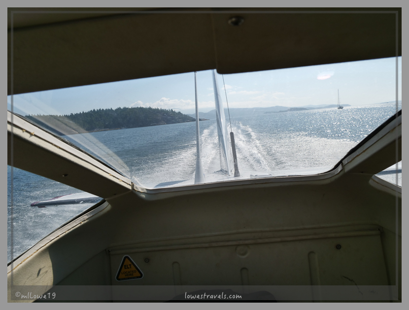 We ended up making four take-offs and landings on this flight, including stops at Stuart Island, Surge Narrows and Cortes Island. Short flights, and we never got higher than 1,000′ – perfect for viewing the fantastic panoramas all around us: