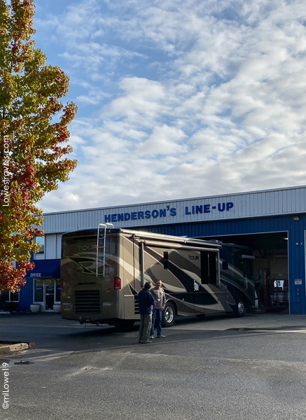 Next up was a visit to Henderson’s Line-up in Grant’s Pass for an inspection of Betsy’s suspension, brakes and tires. We went in with no particular complaints, but since these experts performed several suspension upgrades in 2012 Steve likes to have them check her out when we’re in the area. This was our 4th visit, and we ended up needing some minor brake work so it was definitely a worthwhile stop.