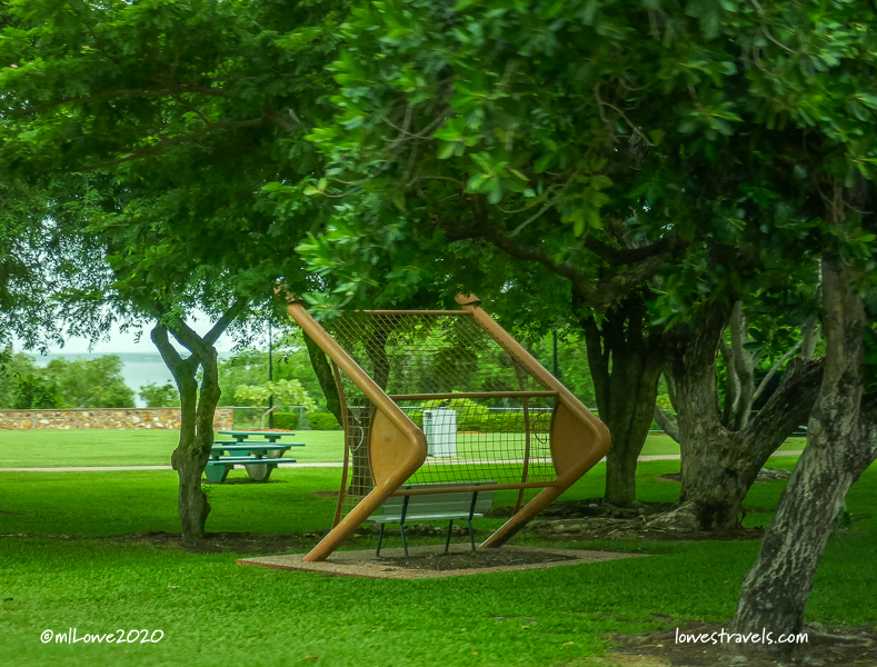 The next morning we headed out on our own for a nice long walk on solid ground. With the temperature in the high 80’s and humidity in the 70’s we worked up quite a sweat during our 4-mile trek. We observed that even on a Saturday the city seemed quiet and we felt the laid-back Aussie lifestyle compared to busier Cairns which has about the same population. That made sense, as we learned that Darwin is the “unhurried capital of the Northern Territory” and was named for the British naturalist, Charles Darwin.
