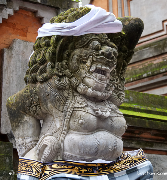 Because of its very religious society and number of Hindu temples, Bali is called “The Island of a Thousand Puras (Temples)”, or “The Island of the Gods.” We saw hundreds of temples and statues – large and small – standing sentry over homes and businesses everywhere. They are used for different purposes; some for worship, some for cremation, and some for specific ceremonies throughout the year. But we only visited two.