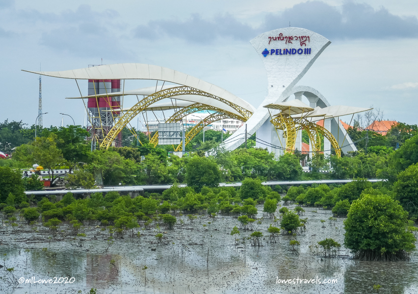 Bali’s most iconic landmark is a cultural park with the largest artistic statue in southeast Asia. The Garuda Wisnu Kencana soars to a height of over 393′, higher than the Statue of Liberty. We caught our first glimpse of it from the ship as we docked (see first photo above).