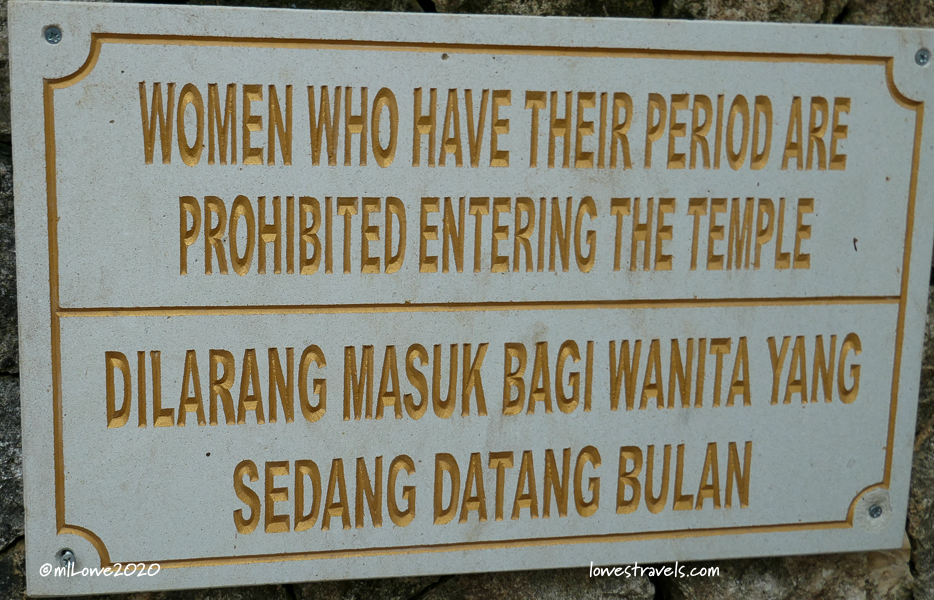 We noticed that statues and objects all over the island featured sarongs, usually of black and white checkered cloths. Our local guide advised that it symbolizes the good (white) and the bad (black) spirits. The differences set the balance of the universe, like the Tiongkok people who have Yin and Yang – the sign which signifies the ‘black’ and ‘white’ sides of the world.