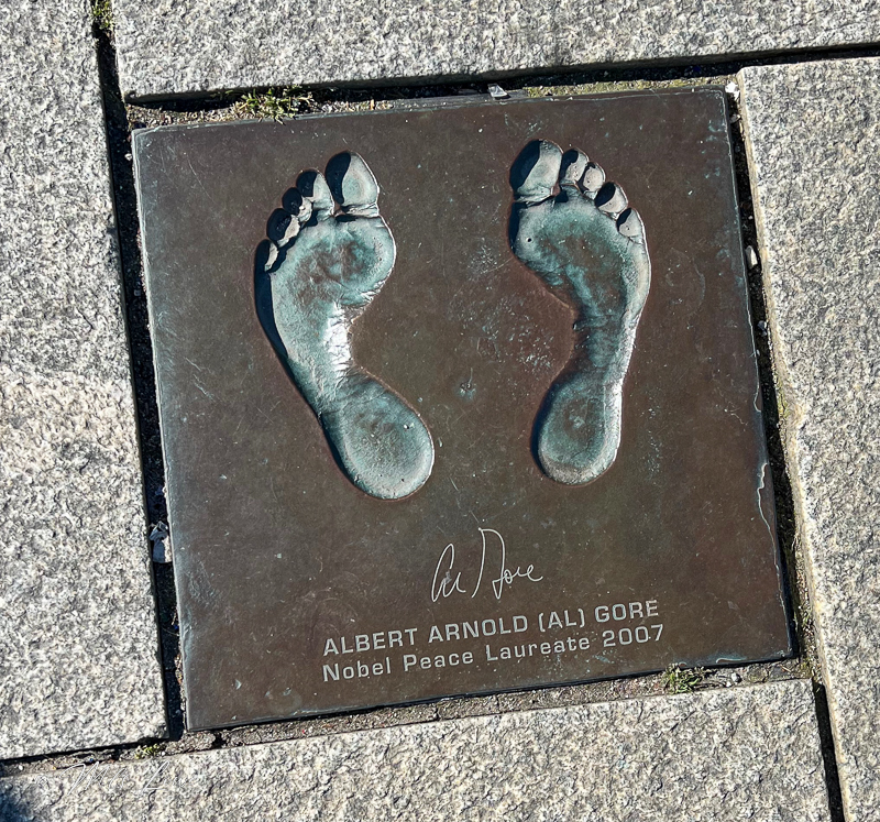 I failed to elaborate the footprint 🙂 There are footprints of several Nobel Prize winners and peace advocates that form a pathway along the bay and apparently Al Gore was one of them.