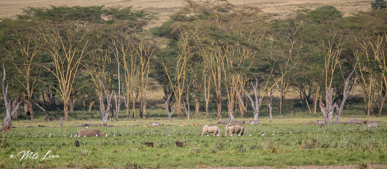 Four hours later, with cameras ready and excitement building, we arrived at our first game drive at Lake Nakuru National Park. This place is famous for the colonies of flamingos that thrive along its waters, and they were just waiting for us. It’s also a habitat to over 100 endangered black and white rhinos, and home to the endangered Rothschild’s Giraffe (remember the ones we fed at the Giraffe Center?)