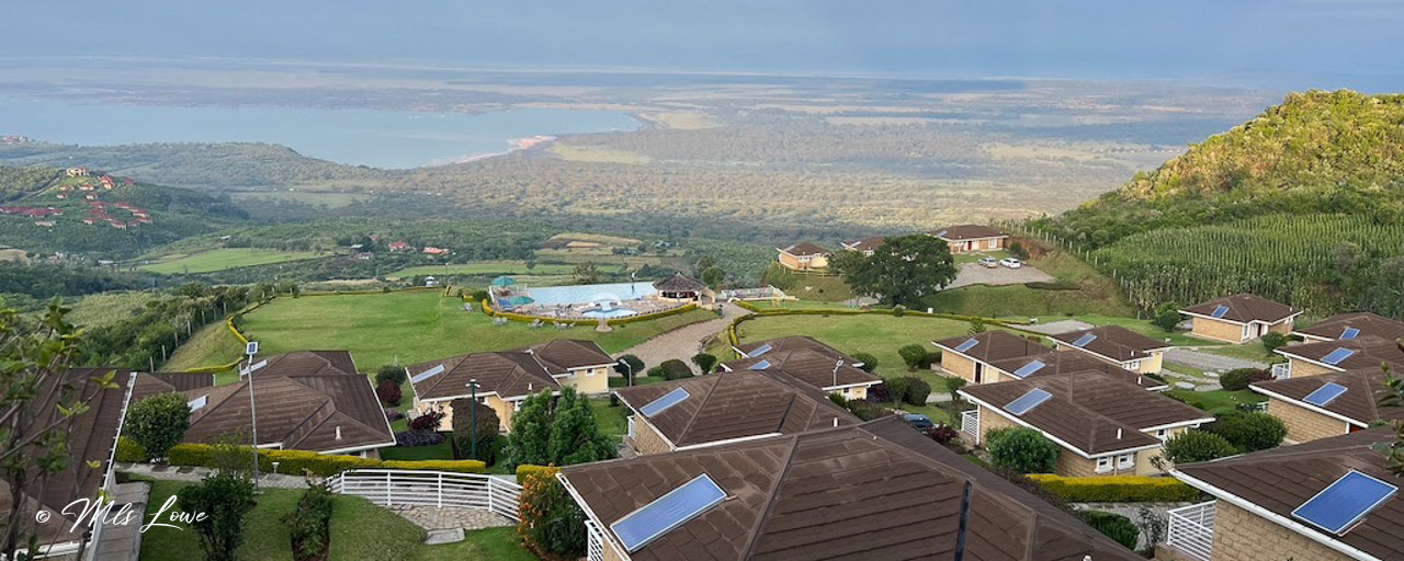 The drive to Lake Elementaita Mountain Lodge after the game drive was yet another experience of insane driving. Climbing 1400′ up the resort access road (if you can call it a road) was a hair-raising experience, and the wine included with dinner was a welcome relief. But the stunning views from our room made up for it. This was just an overnighter, and we would have been happy to stay longer.