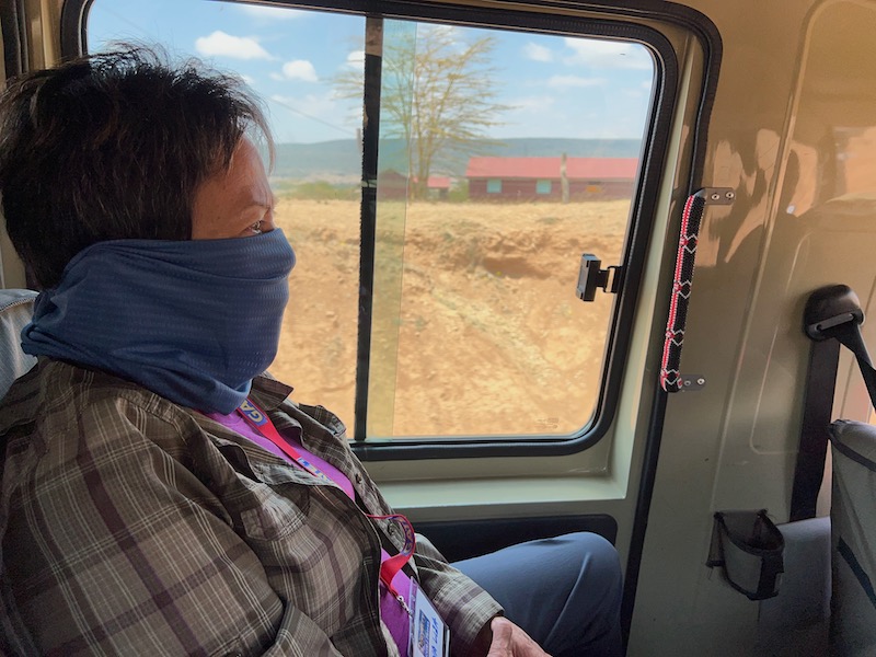 Upon departure from the hotel, our driver/guide/wildlife expert Benson briefed us on what to expect during our multi-day trip. We were informed that plastic bags are illegal in Kenya (yup, this was announced while we were still on the plane), and tap water should only be used for hand-washing and showers (bottled water for drinking and tooth-brushing). We should also be prepared for an “African back massage” during our hours of driving on brutally rough, bumpy and dusty roads. Ladies must be prepared to squat in any wash rooms other than at hotels.