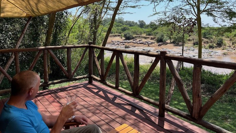 Our home base for two nights was at the Neptune Mara Rianta Luxury Tented Camp, directly overlooking the Mara River. It’s surrounded by wildlife and teeming with large groups of hippos. We had to be escorted after dark when we wanted to leave our tent – not because of criminals but because of wild animals. Cool!