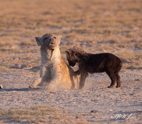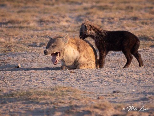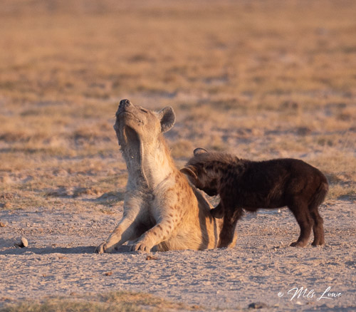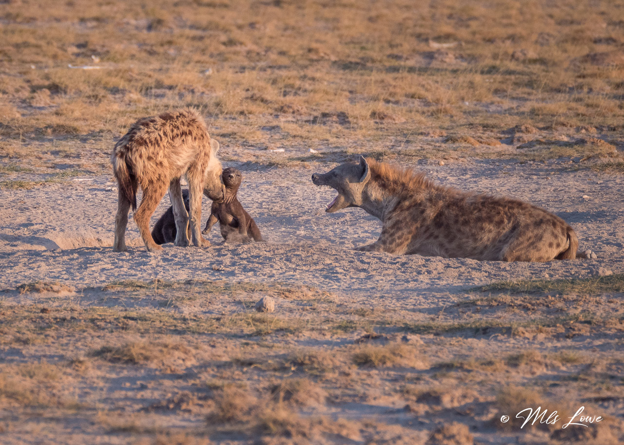 On our way down from the hill we spotted a family of Hyenas in their dens (this is one of the “Ugly Five of Africa”), and one of the kids was tickling his mother: