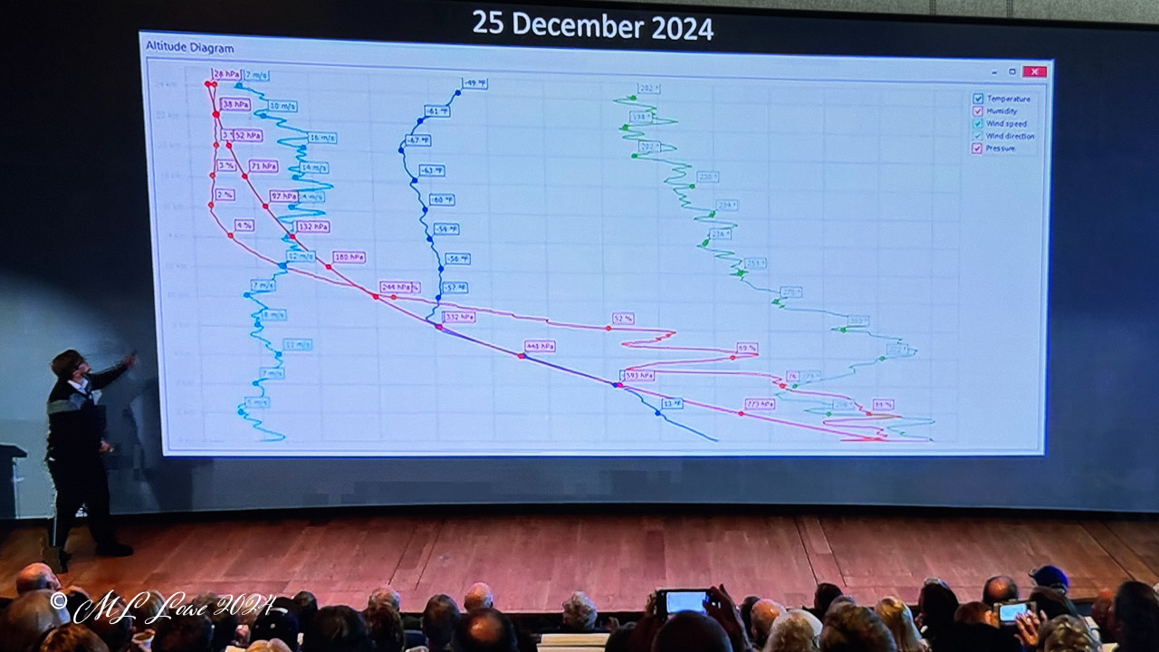 The balloon itself is made of biodegradable latex, and the radiosonde which hangs below collects the data which is sent back to the ship in real time. Flights last around 2 ½ hours before the balloon “pops” at altitudes often reaching over 18 miles (30 km) high.