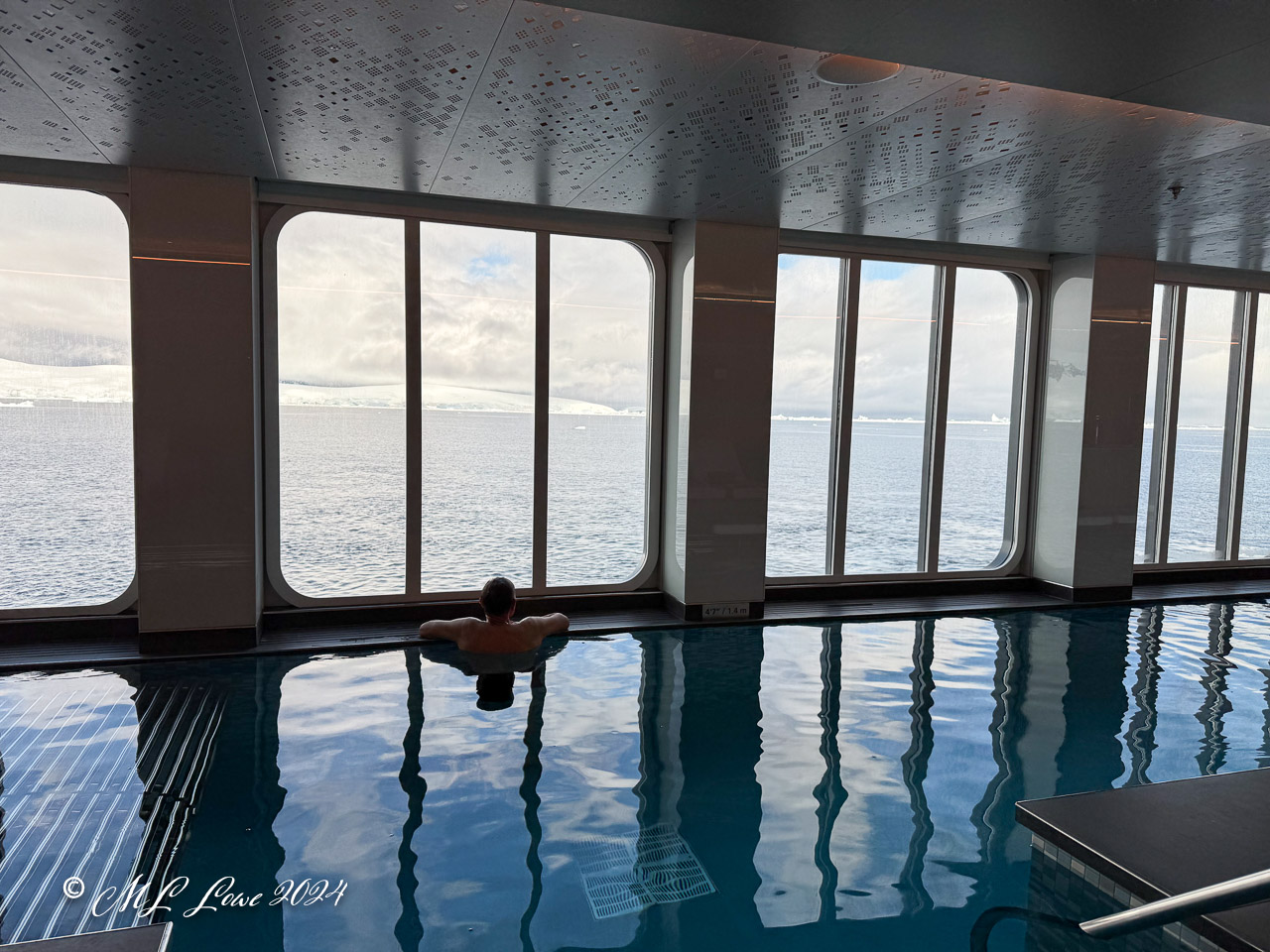 Your video really shows how HUGE the iceberg actually is! The mineral pool with windows looking out over the frigid waters and icebergs looks heavenly but…..that snow shower, not so much!